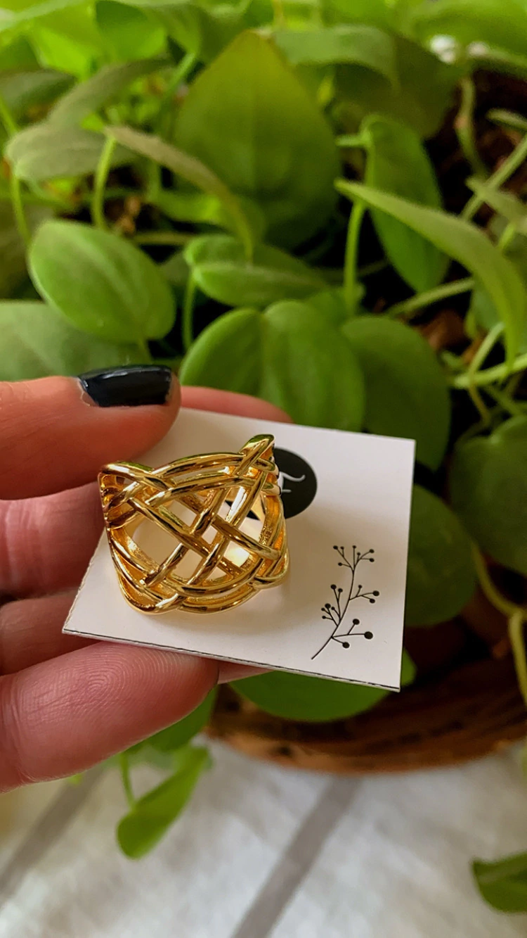 Un diseño audaz y elegante, este anillo trenzado en acero dorado es la pieza protagonista de tu look ✨.