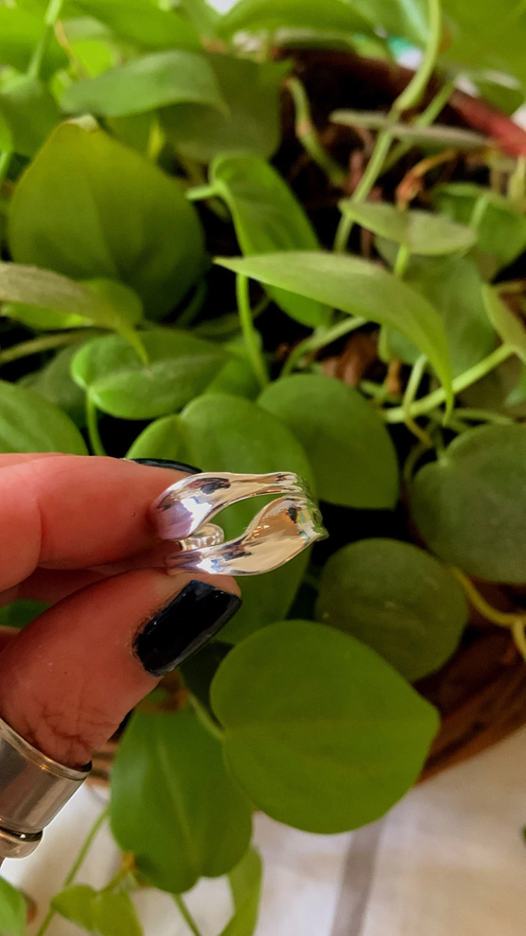 Un diseño que fluye en tu mano ✨. Este anillo de acero blanco, con su forma de múltiples ondas, crea una pieza audaz y moderna. Sus superficies pulidas reflejan la luz, dándole un brillo único y una sensación de movimiento que no pasará desapercibida.