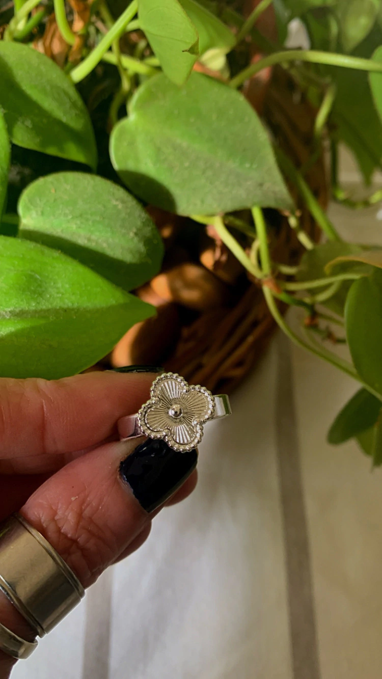 Anillo Flor Van Cleef Facetado – Acero Blanco