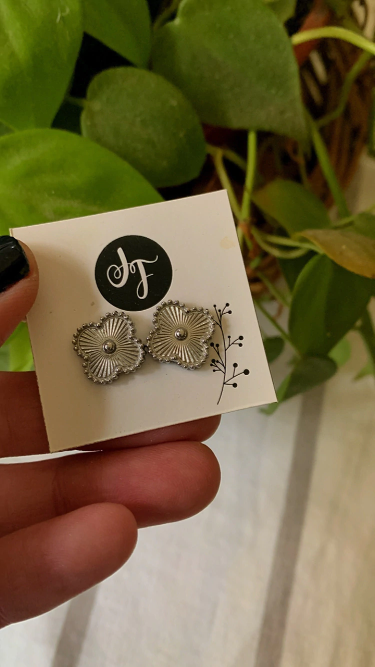 Aros Flor Facetada – Estilo Van Cleef / Acero Clásico