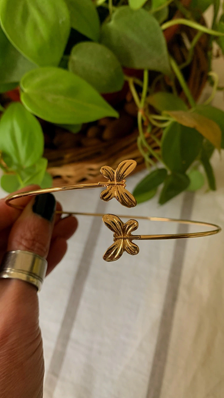 ✨ Liviano, delicado y lleno de onda. Este brazalete abierto con detalle de mariposas es perfecto para darle un toque romántico y con onda a tu look. Se ajusta fácil y queda divino solo o en stack.