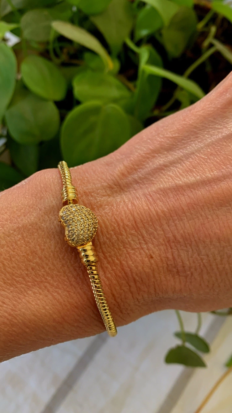 Una pulsera soñada que combina elegancia y brillo ✨. Su cierre en forma de corazón con micropavé le da ese toque romántico y sofisticado que la hace única. Perfecta para usar sola o sumar tus charms favoritos y personalizarla 💕.