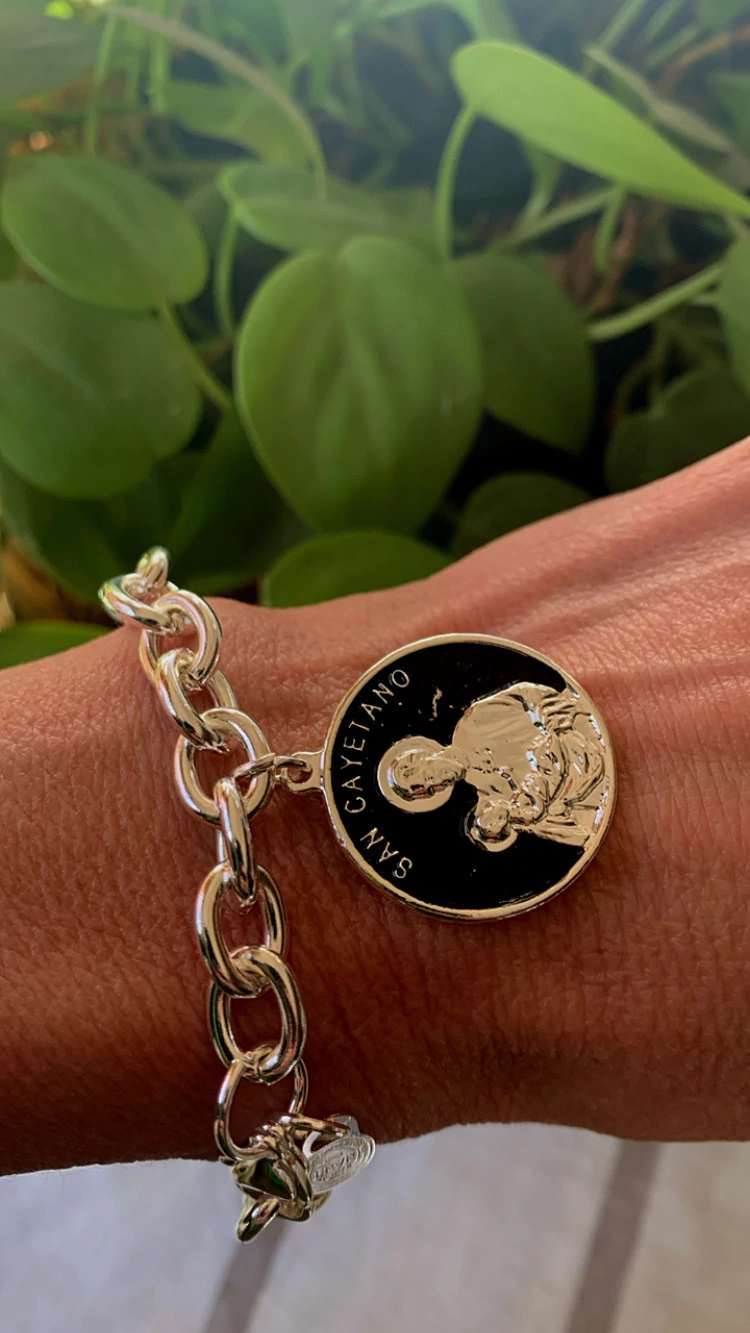 Clásica, canchera y con mucha fe: el diseño Tiffany se combina con el dije de San Cayetano, Patrono del pan y del trabajo, para que lo lleves siempre con vos como amuleto de protección y esperanza. 💛