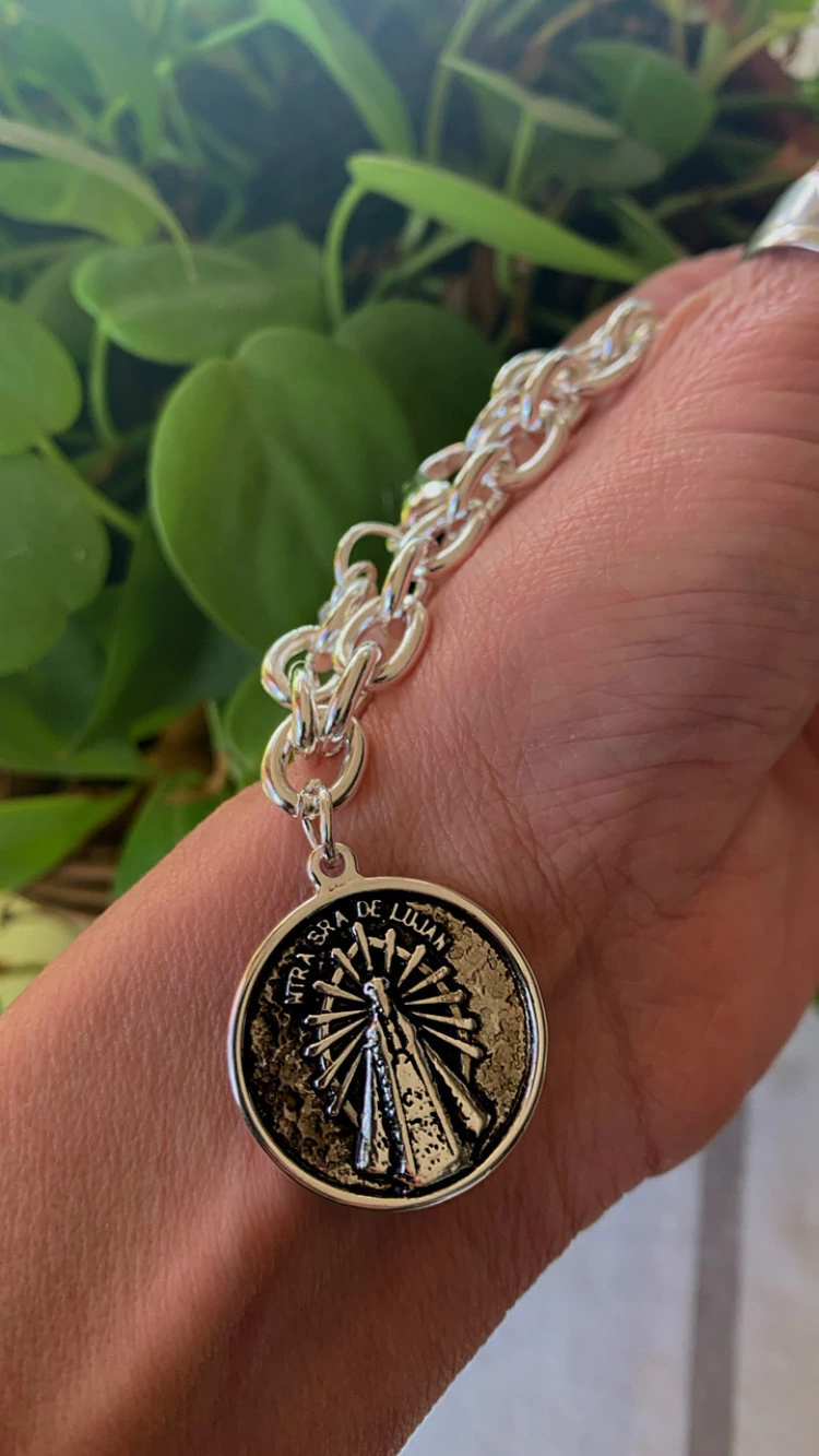 Pulsera Tiffany con Dije Virgen de Luján – Acero Blanco ✨