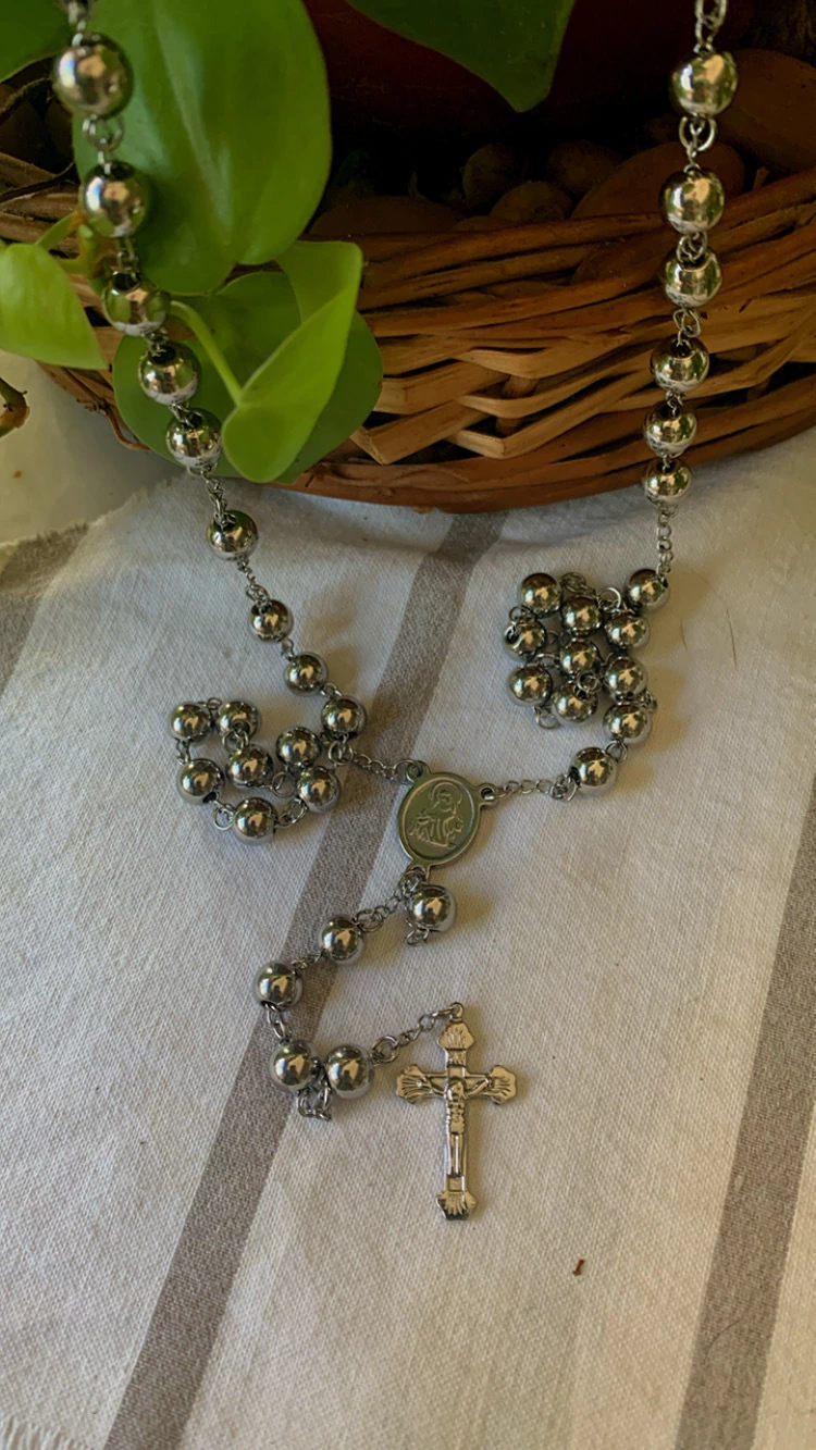 ✨ Rosario con diseño clásico y significado religioso, fabricado en acero quirúrgico resistente. Perfecto para llevar ese toque espiritual, solo o combinado con otros accesorios.